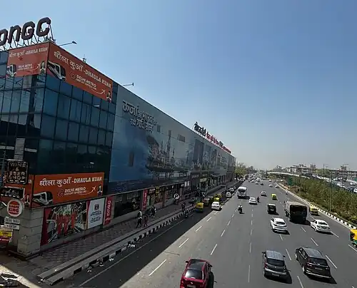 The Dhaula Kuan metro station is located on the Delhi Airport Express Line of the Delhi Metro. The solitary elevated station on the Airport Express Line, it features check-in facilities as well.[1] This station did not begin operations with the rest of the Airport Express Line, and initially, trains passed through without stopping. It was later opened to the public on August 15, 2011.