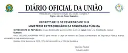 The Diário Oficial da União (literally Official Diary of the Union), abbreviated DOU, is the official gazette of the Federal Government of Brazil. It is published since 1 October 1862 and was created via the Imperial Decree 1,177 of its 9 September as the Official Journal of the Empire of Brazil.[1] Its current name was adopted after Brazil became a federal republic, and the "Union" came into being as the legal personality of the new federal government. The official journal is published by the Brazilian National Press.
