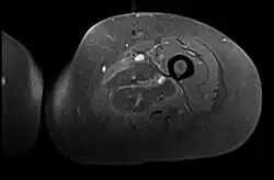 1. ^ Bhasin R, Ghobrial I (2013). "Diabetic myonecrosis: a diagnostic challenge in patients with long-standing diabetes". Journal of Community Hospital Internal Medicine Perspectives. 3 (1): 20494. doi:10.3402/jchimp.v3i1.20494. PMC 3716030. PMID 23882392.