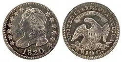 - ^ History of the Capped Bust Dime (1809-1828) Archived 2011-08-10 at the Wayback Machine Retrieved on 2010-2-9