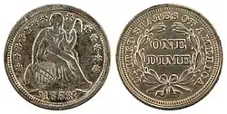 - ^ History of the Seated Liberty Dime (Variety V) Archived 2010-07-26 at the Wayback Machine Retrieved on 2010-2-9
