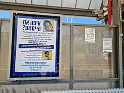 Search poster for Heimnot Kassau at the train station in Binyamina