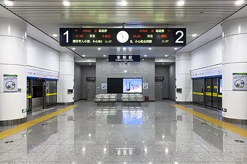 Donghuan railway station (simplified Chinese: 东环站; traditional Chinese: 東環站; pinyin: Dōnghuán Zhàn; Jyutping: Dung1waan4 Zaam6) is a station on Guangzhou–Huizhou intercity railway located in Panyu District, Guangzhou, Guangdong, China.[1] The station opened on 26 May 2024, and is operated by Guangdong Intercity Railway Operation Co., Ltd.[2][3]