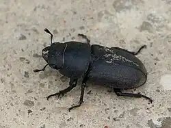 Dorcus parallelipipedus, the lesser stag beetle, is a species of stag beetle found in Europe.