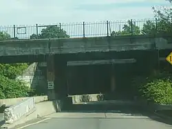 Dowd Avenue heading under a state-maintained bridge in Elizabeth