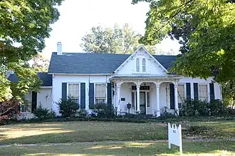 The Dr. Charles Fox Brown House is a historic house at 420 Drennan Street in Van Buren, Arkansas. It is a single-story brick structure, whose main block is five bays wide, with a small secondary block set back from the front at the left, and an ell extending to the rear. It has a side-gable roof, with a front-facing gable above the centered entrance, which is further sheltered by a flat-roof portico supported by four columns. The eaves are studded with brackets, and there are a pair of round-arch windows in the front-facing gable. The house was built in 1867 for Dr. Charles Fox Brown, and is unusual for the original 19th-century surgery, located in the secondary block. The house is stylistically a distinctive blend of Greek Revival and Italianate styles.[2]