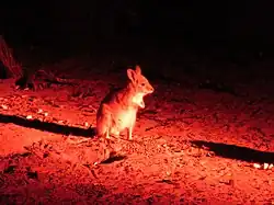 Threatened fauna receive extra protection within the Barna Mia animal sanctuary, which is open to visitors by appointment for nocturnal tours on alternate evenings.[8] Native marsupial fauna include the woylie (Bettongia penicillata), bilby (Macrotis lagotis), mala (Lagorchestes hirsutus), boodie (Bettongia lesueur), and marl (western barred bandicoot: Perameles bougainville). The quenda (southern brown bandicoot: Isoodon obesulus) is locally extinct but may be reintroduced.[1]
