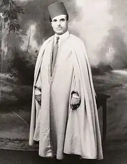 At first, Bourguiba was enrolled in the French-Arab elementary school of Monastir. There, he got close to a French teacher, Pierre Mounier-Pillet, and had kept contact with him for years, as they met forty years later in Cairo. But Ali, who wanted his son to have an exemplary education and chances like his brothers, sent him to Tunis in order to live with his brother M'hamed.[9] In 1907, Bourguiba left Monastir toward Tunis, on board of Sousse train, which got him to the capital city, marked with the separation with his mother at 5 years old. He could only see his mother during summer vacations, after nine months of isolation.[12] Years later, Bourguiba recounted that experience saying: "It was in 1907, such a journey at that time was not that easy. It was a real expedition. We went to Sousse thanks to a diligence that belonged to a Maltese named Carlo. This vehicle was dilapidated and needed the four or five passengers to get off in order to push it whenever we ascended a hill or retain the slope so that the hitch is not crushed. Arrived in Sousse, I had to take the train from the Bone-Guelma Company. It took four or five hours to reach Tunis".[7] At his arrival, the city was marked with the fight against the protectorate and the emergence of the Tunisian national movement, led by Ali Bach Hamba.