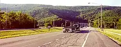The East River Mountain Tunnel is a 5,412-foot (1,650 m) vehicular tunnel that carries Interstate 77 (I-77) and U.S. Route 52 (US 52) through East River Mountain between Bluefield, West Virginia, and Rocky Gap, Virginia.