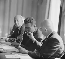 Edmond de Rothschild invested heavily in the Tel-Aviv-based Israel General Bank, contributing to the newly created State of Israel. He later became president of this institution.[10] After the Six-Day War, the Baron contributed to the creation of the Israel Corporation Investment fund when, in 1968, he was invited alongside other wealthy individuals by Israeli Finance Minister Pinchas Sapir to the so-called Millionaire's Conference. Each guest was asked to invest $100,000 in the creation of the Corporation.[11] He also promoted major projects in the country via the Clali Bank, another of his ventures in Israel, which he sold in 1996.[12] The Baron was President of the Caesarea Development Corporation and of the Israel European Company Isrop (in Luxembourg). He contributed to the creation of the Supreme Court building in Jerusalem.[13] and was the founder of multiple cultural and educational institutions in Israel.[10]