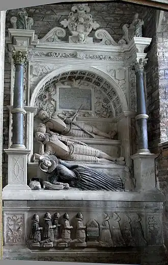 - Lady Elizabeth Seymour (1552 – 3 June 1602), who married Sir Richard Knightley, of Fawsley, Northamptonshire. Her portrait was painted by Marcus Gheeraerts the Younger including the Seymour phoenix badge,[75][76] and her monument with effigy survives in All Saints church, Norton, Northamptonshire.[77]