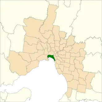 ![]() Location of Albert Park (dark green) in Greater Melbourne | |