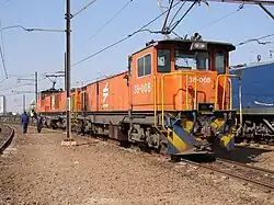 - The South African Class 38-000 is a 3 kV DC electro-diesel locomotive designed by Consortium under the leadership of Siemens and built by Union Carriage and Wagon (UCW) in Nigel, Gauteng, South Africa. Between November 1992 and 1993 fifty of these locomotives were placed in service by Spoornet, formerly the South African Railways (SAR) and later renamed Transnet Freight Rail (TFR). The diesel engine enables the locomotive to shunt on unelectrified sidings.[46]