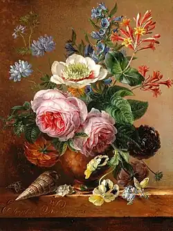 At the age of nine, Koning was honored by having her drawings exhibited at the 1825 Tentoonstelling Nationale Nijverheid (National Industrial show) in Haarlem.[3][4] At the age of sixteen, Koning was commissioned by florist Van Eeden to draw the flowers in his greenhouse. She was later commissioned to do the same by Amsterdam banker Adriaan Van der Hoop at his residence in Spaanberg.[5] In 1844, she was made honorary member of Kunst zij ons doel (Haarlem Drawing Society) and a year later she was named member of the Koninklijke Academie van Beeldende Kunsten in Amsterdam (Royal Academy of Art).[3]