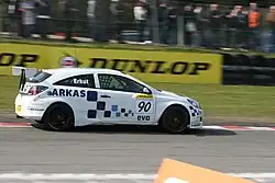 Kizilirmak driving the Arkas Racing Vauxhall Astra at Brands Hatch during the 2007 British Touring Car Championship season.
