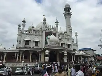 From top to bottom: Entrance arch of Petta Sree Dharmasastha Temple, Vavar Juma Masjid