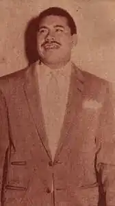 By 1954, he signed a contract with Empresa Mexicana de Lucha Libre (EMLL), which mean he began to wrestle for the largest wrestling promotion in Mexico at the time. When he signed with EMLL he began to work regularly in Mexico City, but was forced to make several changes to his ring character. The Mexico City boxing and wrestling commission requested that he removed the "Ultratumba" from his name and would not allow him to be carried to the ring in a coffin, worried that it would be too scary for kids in attendance.[3] Working under those restrictions he still made an impact in EMLLusing the name El Espectro.[3] On September 23, 1955, Espectro defeated Rolando Vera to win the Occidente Middleweight Championship, holding it for 70 days before losing it back to Rolando Vera.[5] During his early days in EMLL he struck up an in-ring partnership with Karloff Lagarde and an out of the ring friendship that lasted for the rest of their lives. He also formed a successful team with Ray Mendoza, a team that at one point won the Mexican National Tag Team Championship.[6] Records are unclear on which team Espectro and Mendoza defeater, nor does it state who they lost the championship or when.[6] In the late 1950s he formed a team with the original Karis La Momia (Karis "the Mummy") who had a similar "super natural" character.[3] Due to the popularity of the El Espectro character EMLL promoters gave Gerardo Tapia Salinas the role of the second Espectro, Epectro II with Hernández being called "Espectro I", together Los Espectros became a very popular and successful tag team.[3]