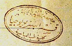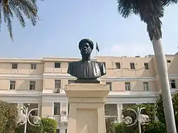 The school of medicine was called el-Demerdash School of Medicine, before establishment of the university. The original El-Demerdash Hospital was established on August 5, 1928, by a generous grant from El-Demerdash Pasha[6] and his wife and daughter. It was built on 12,400 square metres, and had 90 beds and the following sections: quarters for a resident physician and chief nurse, two wards, a surgery unit, out-patient clinic, a laboratory, kitchen, laundry room, isolation ward, an autopsy department and a mosque containing the mausoleum for the El-Demerdash family. The foundation of the hospital was witnessed by many people representing all the society of Egypt and also by the two most powerful figures in the country in that time: Lord George Lloyd (later on George Lloyd, 1st Baron Lloyd), the British high commissioner, and Prime Minister of Egypt Mohamed Mahmoud Pasha. The opening ceremony was covered by Al Ahram, The Times and the Near East journals.[6] It was officially opened on May 5, 1931. A memorial metallic plate and a marble monument were erected to mark this event.