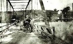 ![]() Stone dam on Neuse River at Falls, North Carolina prior to the construction of the current Falls Lake Dam | |