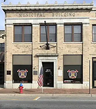 Farmville Historic District is a national historic district located at Farmville, Pitt County, North Carolina. The district encompasses 330 contributing buildings, 1 contributing site, and 2 contributing structures in the central business district and surrounding residential sections of Farmville. It includes buildings dated from about 1860 to 1942 and notable examples of Colonial Revival, Classical Revival, and Queen Anne style architecture. Notable buildings include the James W. May House (c. 1860), Fields-Rasberry House (c. 1900), Dr. David Morrill House (c. 1909), Warren Parker House, Nannie Smith House (c. 1884), First Christian Church (1910), Emmanuel Episcopal Church (1920), St. Elizabeth Catholic Church, Municipal Building (1928) possibly designed by Benton & Benton, Bank of Farmville (1921) designed by Benton & Benton, Pollard Auto Company Building, Paramount Theatre (1930s), J. Y. Monk Tobacco Warehouse, and East Carolina Railway Office and Freight Station.[2]