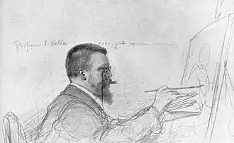 In 1870, he became a teacher of portrait and history painting at the Karlsruhe Academy and was appointed a Professor in 1873.[1] From 1880 to 1913, he served as director.