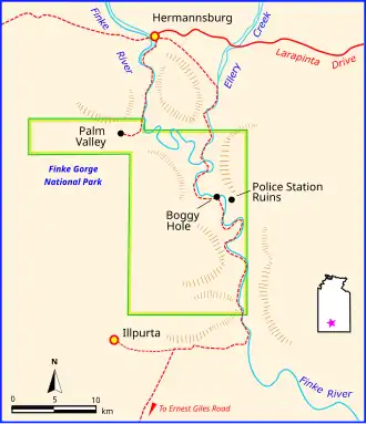- ^ https://nt.gov.au/__data/assets/pdf_file/0012/200037/finke-gorge-national-park-fact-sheet.pdf Particularly note the "Police Station Ruins"