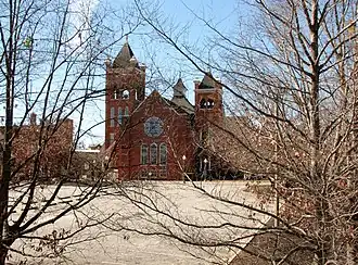 First Baptist Church is a historic Baptist church located at 200 Old Street in Fayetteville, Cumberland County, North Carolina. It was built between 1906 and 1910, and is a Romanesque Revival-style brick church. It has a gable front flanked by towers of unequal size.[2]