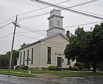 First Baptist Church of Mumford is a historic Baptist church located at Mumford in Monroe County, New York. It was built in 1852, and is a three-by-four-bay, vernacular Greek Revival–style frame church building on a cobblestone foundation. It features a square, three stage tower. Minor expansions and alterations were done to the building through 1917.[2]