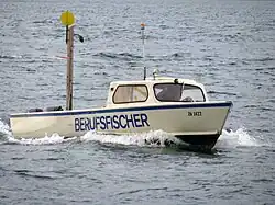 Swiss fishermen ply the lakes in small, open boats with outboard motors and space for nets, traps and coolers in the back.[14] They rarely have more than one other person working in the boat.[26] No purpose-built fishing vessels such as trawlers like those used by marine fishermen in other countries are in use.[31]