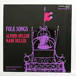 Folksongs is a 1972 album by the countertenor Alfred Deller with his son Mark Deller and lutenist Desmond Dupré.[1][2][3] In addition to actual folksongs it includes three songs composed by Thomas Morley and one by Robert Jones.