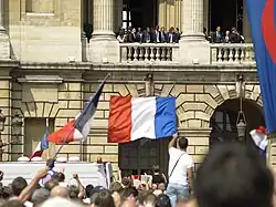 France automatically qualified as hosts for UEFA Euro 2016,[53] advancing to the knockout stages, where they defeated the Republic of Ireland and Iceland.[54] In the semi-final, France defeated Germany 2–0, marking their first win over Germany at a major tournament since 1958.[55][56] France, however, were beaten by Portugal 1–0 in the final courtesy of an extra-time goal by Eder.[57]
