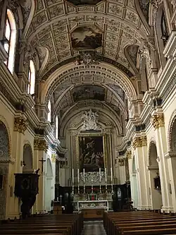The main attraction is undoubtedly the impressive Miraculous Crucifix (in Maltese: Il-Kurċifiss Mirakuluż),[3] by the Sicilian friar Innocenzo da Petralia Sottana around 1630. It immediately attracted the attention of the people.[4] Accompanying the crucifix is a painting of Our Lady of Sorrows by Stefano Erardi.