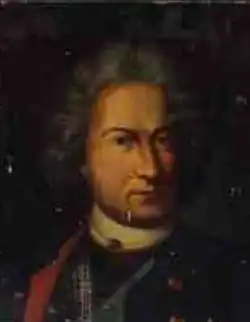He was only the titular duke, because he did not inherit the domain of Beck. It had been inherited by Duke Frederick William I, the son of his elder brother, Duke August, in 1689.[1] Duke Frederick William I was killed in the Battle of Francavilla in Sicily in 1719, leaving a widow, née Maria Antonia called Antoinette Josepha Isnardi di Castello, Contessa di Sanfré (1692–1762), and two minor daughters.[1] Maria Antonia shared administration of Beck with her mother-in-law, Duchess Hedwig Louisa of Schleswig-Holstein-Sonderburg-Beck (née Countess of Lippe-Bückeburg-Schaumburg).[1]