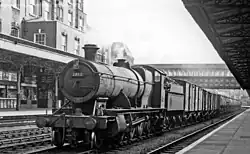The 2800 class was particularly used for hauling heavy trains of coal from the South Wales coalfields to the large conurbations served by the GWR, and large numbers of the class were allocated to sheds in South Wales. However, the class was the primary heavy freight locomotive on the GWR, and therefore saw use across the railway network. Due to the variety of freight flows, it was found that individual locomotives could spend extended periods away from their home shed, and a container was added to the left hand valence which carried details of boiler washout dates to ensure that this necessary activity was carried out in a timely manner.[2] There was no differentiation in duties between the original 2800 class of 1905 and the modified 2884 design of the 1930s.