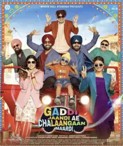 Gaddi Jaandi Ae Chalaangaan Maardi is a Punjabi film released on 28 September 2023. The film is directed by Smeep Kang and written by Naresh Kathooria starring Ammy Virk, Binnu Dhillon, and Jasmin Bajwa in lead roles. The supporting cast includes Jaswinder Bhalla, B. N. Sharma, Seema Kaushal, Hardeep Gill, Maahi Sharma, Mohan Kamboj, Parminder Gill and Guri Ghuman.[1]
