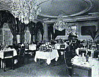 The Galerie des Champs-Elysées was located in the 8th arrondissement of Paris, France during the late 19th century. It took its name from the iconic Parisian avenue of Champs-Élysées. The gallery, situated at 72 avenue des Champs-Élysées and rue de Ponthieu, was primarily used for public meetings, dances, and banquets, rented by its owners, Fabre et Cie, to various tenants.[1] The Galerie des Champs-Élysées was designed by French architect Eugène-Joseph-Armand Duquesne.[2]
