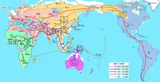 - ^ Hammer MF, Karafet TM, Redd AJ, Jarjanazi H, Santachiara-Benerecetti S, Soodyall H, et al. (July 2001). "Hierarchical patterns of global human Y-chromosome diversity". Molecular Biology and Evolution. 18 (7): 1189–1203. doi:10.1093/oxfordjournals.molbev.a003906. PMID 11420360.