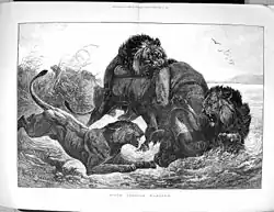 His first painting, exhibited at the Royal Academy in 1856, was Hunters. Then followed The Casuals in 1866, Home to Die: An Afternoon Fox with the Cotswolds in 1868, The Tournament in 1870, and Sale of New Forest Ponies at Lyndhurst in 1872. In 1875, he exhibited a large painting, some fourteen feet in length, depicting Lord Wolverton's Bloodhounds – this was highly praised in Whyte-Melville's Riding Recollections. Following this in 1876 was Colt-hunting in the New Forest, in 1877 The Fall of Man from Milton's Paradise Lost and in 1879 The Struggle for Existence, now in the Walker Fine Art Gallery in Liverpool. In 1881 he painted Rescued, in 1883 Love and War: In the Abbotsbury Swannery and in 1885 Cowed. The Fall of Man, depicting a scene from Milton's Paradise Lost, was widely praised and singled out by the Royal Academy for its portrayal of "the savagery of the brute nature ensuing upon the disobedience of Adam and Eve".[1]