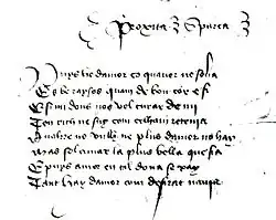 4. ^ This parallel is drawn by Martín de Riquer (1964), Història de la Literatura Catalana, vol. 1 (Barcelona: Edicions Ariel), 585, and confirmed by Joaquín Molas, "Sobre la composición X de Gilabert de Próxita," Revista de literatura, 8:15 (1955:July), 90–97.