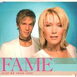 "Give Me Your Love" is a 2003 song written by Carl Lösnitz and Calle Kindbom and recorded by Jessica Andersson and Magnus Bäcklund as "Fame". The song won Melodifestivalen 2003 and was the Swedish entry for the Eurovision Song Contest 2003, where it placed 5th out of 26 competing entries.[1]