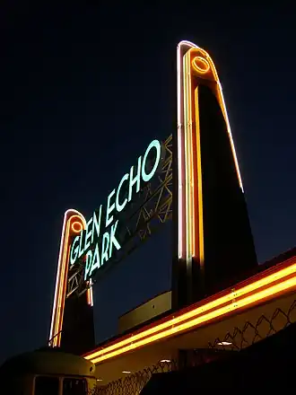Glen Echo Park became one of the larger establishments of its type in the Washington area. Beginning in 1940, the Capital Transit Company (the successor to the WR&E) built a number of Streamline Moderne structures within its facility.[21] The park remained popular well into the late 1940s.[21]