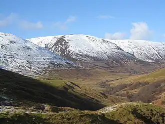Glen Roy is a national nature reserve (NNR), managed by NatureScot.[11] Glen Roy was acquired by the then Nature Conservancy in 1970 and declared a national nature reserve in order to protect the site against proposed afforestation. Whilst Glen Roy is also protected as a Site of Special Scientific Interest (SSSI),[12] at that time this accolade offered much weaker protection than it does today. Protection now comes from both its SSSI and NNR status. The NNR is designated a Category III protected area by the International Union for Conservation of Nature.[1] Glen Roy is also defined as one of the core areas of the Lochaber Geopark.[13]