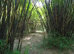 The center of the park contains a large bamboo forest consisting of thousands of stands of bamboo, with natural pathways between. There are more than 140 families of trees and over 1,000 species. Dozens of individual forest areas exist, each predominantly containing one or two types of trees. There is also a pineapple-and-betel-nut plantation, and a 3.5-hectare (8.6-acre) orchard containing sapodilla (in particular Manilkara zapota), lychee, carambola, and other fruit trees. Within this area is a 2.3-hectare (5.7-acre) jackfruit orchard. There is also a large plant nursery.[5] The total green coverage of the land area of the park is over 96%.[1]