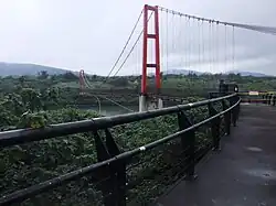 The Shuang River divides the beach into inner and outer parts. There is a footbridge named Rainbow Bridge (彩虹橋) linking the two parts. However, the watercourse of the river varies every year to some extent; sometimes the bridge is functional; other times it is not, because the seaside end would be in the river or in the sea.
