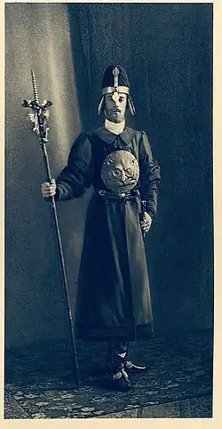 Sergei Mikhailovich was tall, reaching six-foot three,[1] and was the only among Grand Duke Michael Nicholaievich's children to inherit father's blue eyes and blond hair.[1] He became prematurely bald and was considered the least handsome of a very good-looking family.[4] He had a keen sense of the ridiculous, but was pessimistic, as influenced by his tutor Colonel Helmerson. He had the habit of saying "tant pis!" (so much the worse!) to any bad news.[5] Widely considered rude and moody, he was at the same time sincere, affectionate, loved simplicity and was easily accessible without class distinction.