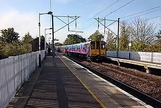 Grange Park railway station is situated just off The Grangeway, Grange Park in the London Borough of Enfield, north London, in Travelcard Zone 5. It is 8 miles 35 chains (8.44 miles, 13.58 km) down the line from London King's Cross[2] on the Hertford Loop Line. The station and all trains serving it are operated by Great Northern. Although located on the original 1871 route between Wood Green (now known as Alexandra Palace) and Enfield, this station opened in 1910 at the same time as the line was extended northwards from Enfield to Cuffley.