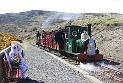 Since the restoration of the railway began the line has always opened for the Easter weekend but the bunny trains only commenced in 1997 and were introduced following a request for them from the Isle of Man Hospice Care which has close ties with the railway, the train services being provided free of charge. However, following the success of the venture, the next year the railway embarked on its own special event operating the Easter Bunny Trains and they became an immediate success, with the full line being utilised (rather than the glen section which is used at Christmas). The railway usually operates a two train service, with trains passing at the headland loop, the Easter Bunny is on hand to distribute chocolate eggs at the outer terminus and free tea, coffee and orange is included in the ticket price along with entry to the Easter Egg Hunt. These services which operate on Easter Sunday and Monday are second only to the Santa Trains as the line's busiest services.