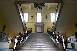A wing to the west was completed in 1934 and a wing to the east was completed in 1937. They were fenestrated by casement windows with voussoirs on the ground floor and by casement windows with cornices on the first floor, and were surmounted by mansard roofs in a similar style to the main block.[11] A major programme of restoration works to clean up the main façade was completed in 2012. It was accompanied by a programme to landscape the area in front of the building.[12]