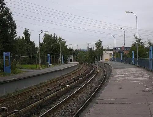 Høyenhall is a rapid transit station on the Lambertseter Line of the Oslo Metro. Served by Line 4, it is the first station on the Lambertseter Line not shared with any other line. It is located between Brynseng and Manglerud, 5.2 kilometres (3.2 mi) away from Stortinget.