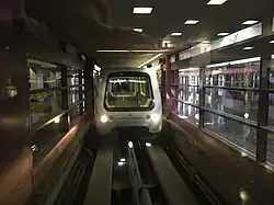Terminal 3 is connected to the D Gates Concourse via the Red Line. Like the two prior lines, the Red Line consists of two tracks, each with a three-car tram shuttling back and forth between the two stations. The third line also uses Bombardier Innovia APM 100 vehicles.[2] Like The Plane Train at the Hartsfield–Jackson Atlanta International Airport and the DIA Shuttle at Denver International Airport, the line is completely underground.